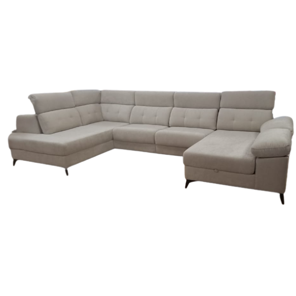 Sofá 3 pl chaiselongue y terminal, con asientos extensibles con carro , cabezal reclinable italiano, brazo arcón.
